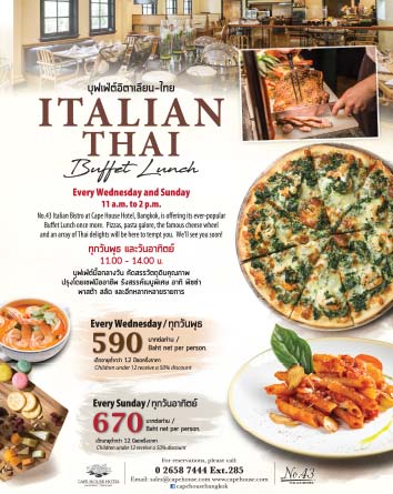 This cosy yet elegant restaurant offers the finest in Italian and Thai cuisine, prepared skillfully by Italian Chefs. It's authentic, delicious, and reasonably priced dishes have seen No.43 become a popular restaurant for lunchtime business crowds and evening diners who want an intimate and relaxed dining experience with excellent food.